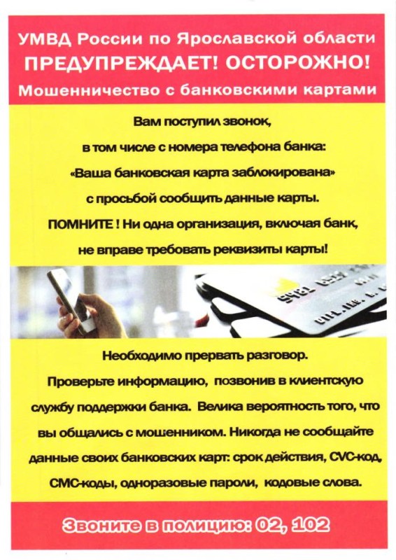 Предлагаем познакомиться с профилактическими материалами (информационными листовками) УМВД России по Ярославской области о способах и формах "дистанционного" мошенничества!